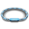 The County Borough Bracelet features silver cord with black and blue flecks and a blue aluminium clasp, engraved COUNTY BOROUGH. Blending style and durability to perfection.