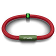 This red sports cord NOTCH bracelet features a green clasp engraved CYMRU, blending style and durability to perfection.