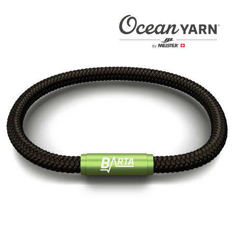 Sustainable OceanYarn BARTA NOTCH Bracelet - Jet Black with Lime Clasp