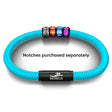 NOTCH Bracelets are designed and made in the UK using durable sports cord, recycled ocean plastic or premium napa leather. They feature a unique stainless-steel, brass, or aluminium clasp, connected by two neodymium magnets. They're available in 4 sizes and 170 different colour combinations.
