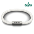 The Official Crufts Bracelet features solid white sports cord with a colour co-ordinated stainless steel clasp, engraved with the Official Crufts Logo. Blending style and durability to perfection.
