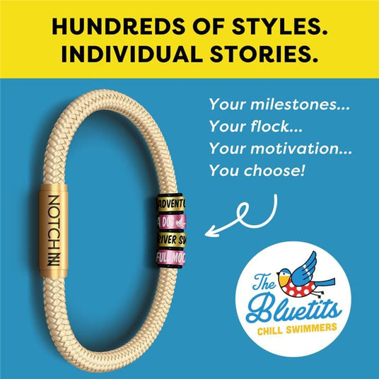 Celebrate your passion for cold water swimming and the fun and camaraderie of being a Bluetit with a NOTCH Bracelet, Loop or Tale! Learn more about The Bluetits Chill Swimmers.