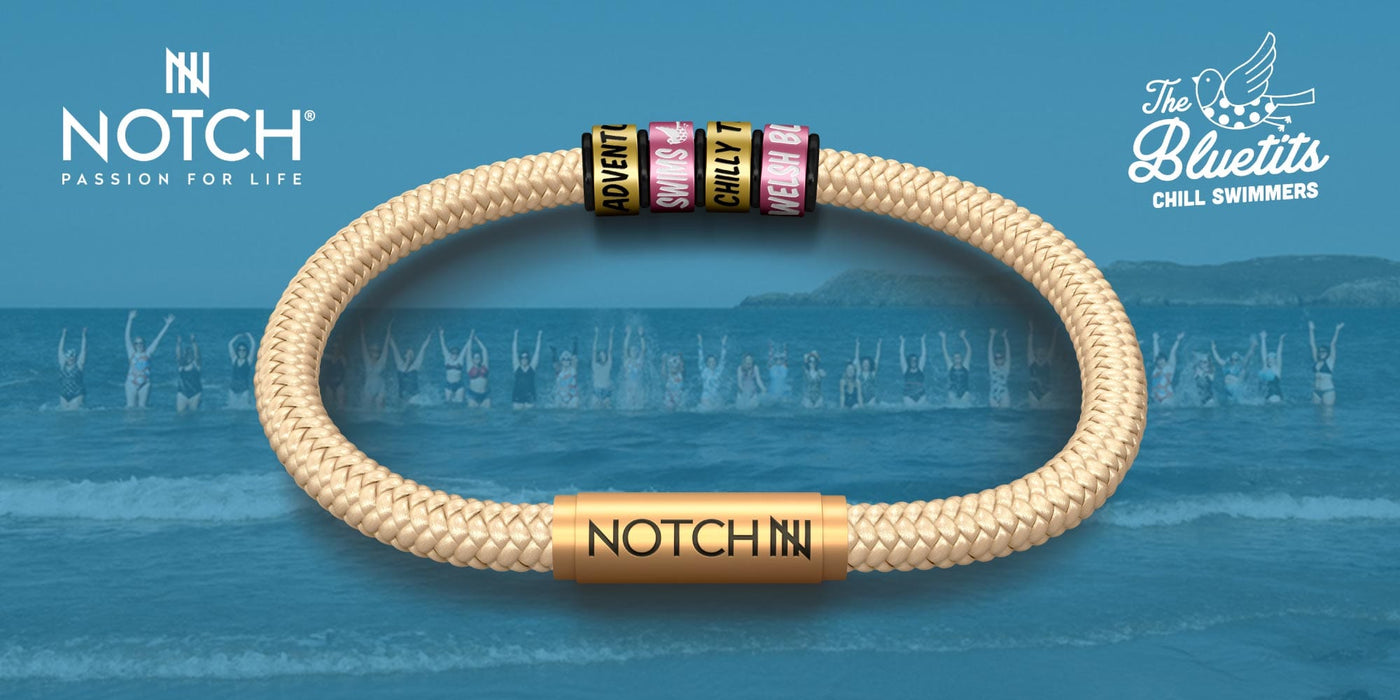 Whether you’re a first timer, ice miler, sunrise swimmer or full moon dipper, NOTCH is the stylish, go-anywhere, achievement bracelet that tells your cold water swimming story.