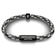 This ice camo NOTCH bracelet features grey, black and white camouflage sports cord and a colour co-ordinated black aluminium clasp engraved NEWCASTLE UNITED, blending style and durability to perfection.